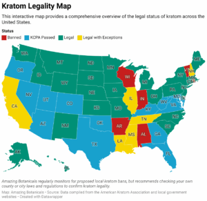 Kratom’s legal status varies globally (Click here to see if kratom is legal in your state). In the United States, the Drug Enforcement Administration (DEA) has considered classifying kratom as a controlled substance, citing safety concerns and reports from poison control centers about adverse reactions. Despite these concerns, kratom remains legal in many states, though it’s essential for consumers to stay informed about local regulations.